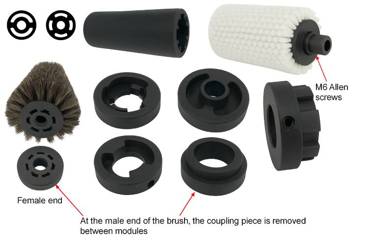 These are modular cylindrical brushes: individual modules interlock to form the desired total length.