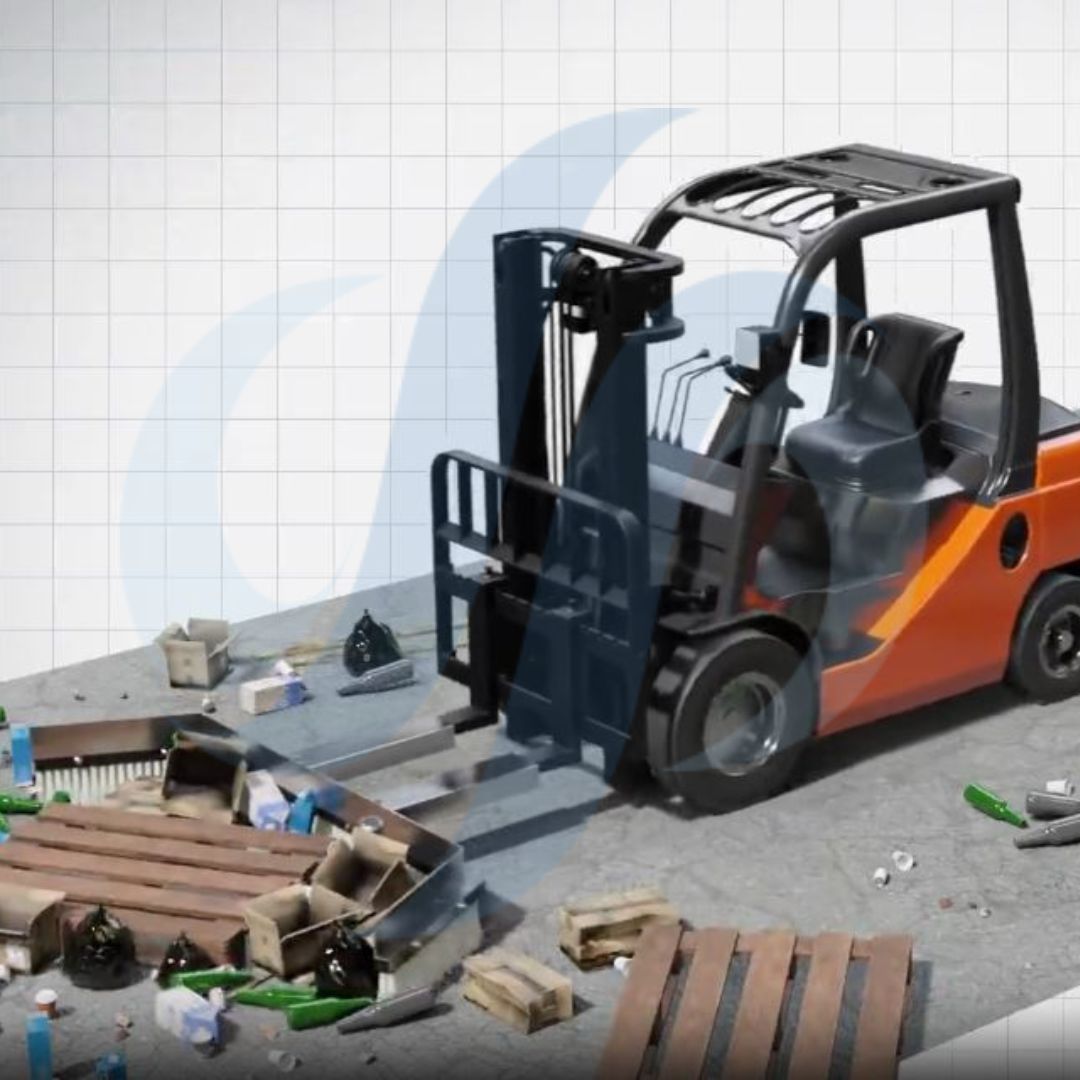 Se trata de una estructura de acero inoxidable muy robusta con entradas para horquillas de carretillas elevadoras y otros vehículos con horquillas, donde se instalan cepillos empujadores con gran fuerza de arrastre, en tramos intercambiables individualmente.